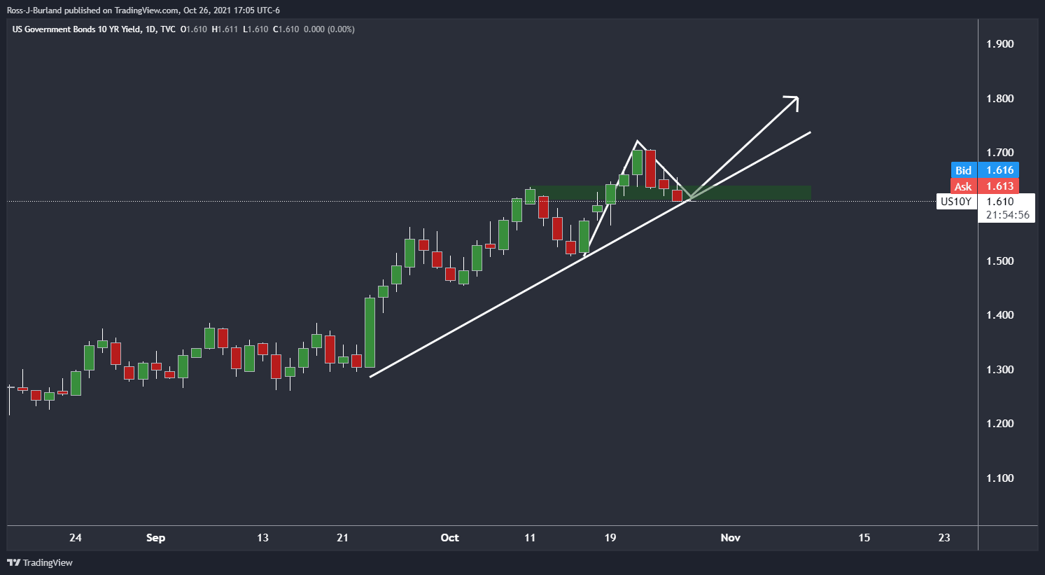 In this regard, the US yields on 10-year kept in a narrow range before sliding to 1.610% in the afternoon in New York. With that being said, the yield is now meeting a dynamic support line on the daily chart as follows, so the trajectory from here could be to the upside: