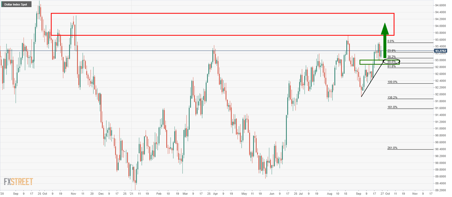 However, Evergrande missed a Thursday deadline for paying $83.5 million and left investors questioning whether it will make the payment before a 30-day grace period expires. The fears are that a default of the company could create systemic risks to China's financial system and wider markets off-shore. The Evergrande debt resolution story is far from clear and until a full debt restructuring is announced, markets are likely to remain on edge and vulnerable to the headlines surrounding the debacle. This is expected to keep the greenback underpinned.