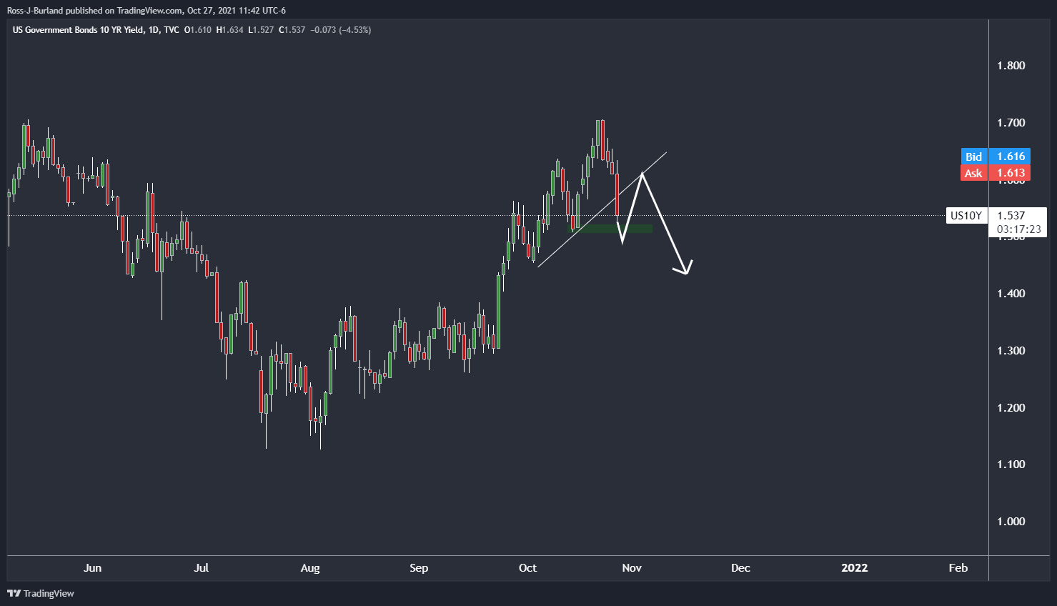The price had left a tweezer top which indicated that the price could move in for another test of the dynamic support and the 21-day moving average: