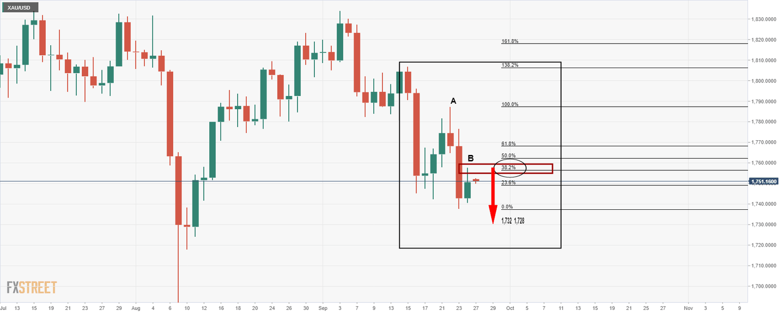 - Gold, Chart of the Week: XAU/USD bearish bias forecast below $1,760
