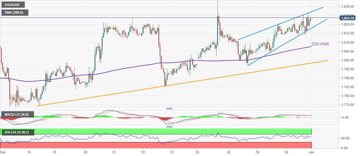 Even so, the 200-HMA and an ascending support line from mid-December, respectively around $1,807 and $1,798, could probe the downside momentum before giving control to the Gold bears.