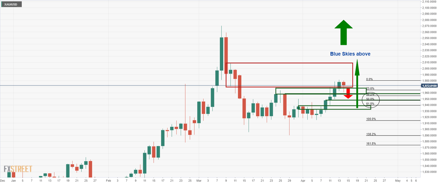 In Asia, it is sticking to a range of between $1,97.46 and $1,973.50 so far. The US dollar has been stronger, printing fresh cycle highs in the DXY in the aftermath of the European Central Bank. Additionally, New York Fed President John Williams said on Thursday that the US Federal Reserve should reasonably consider raising interest rates by a half percentage point at its next meeting in May. This was taken as a hawkish hint for the money markets given that the more dovish the policymakers are starting to fall into line with the hawks.