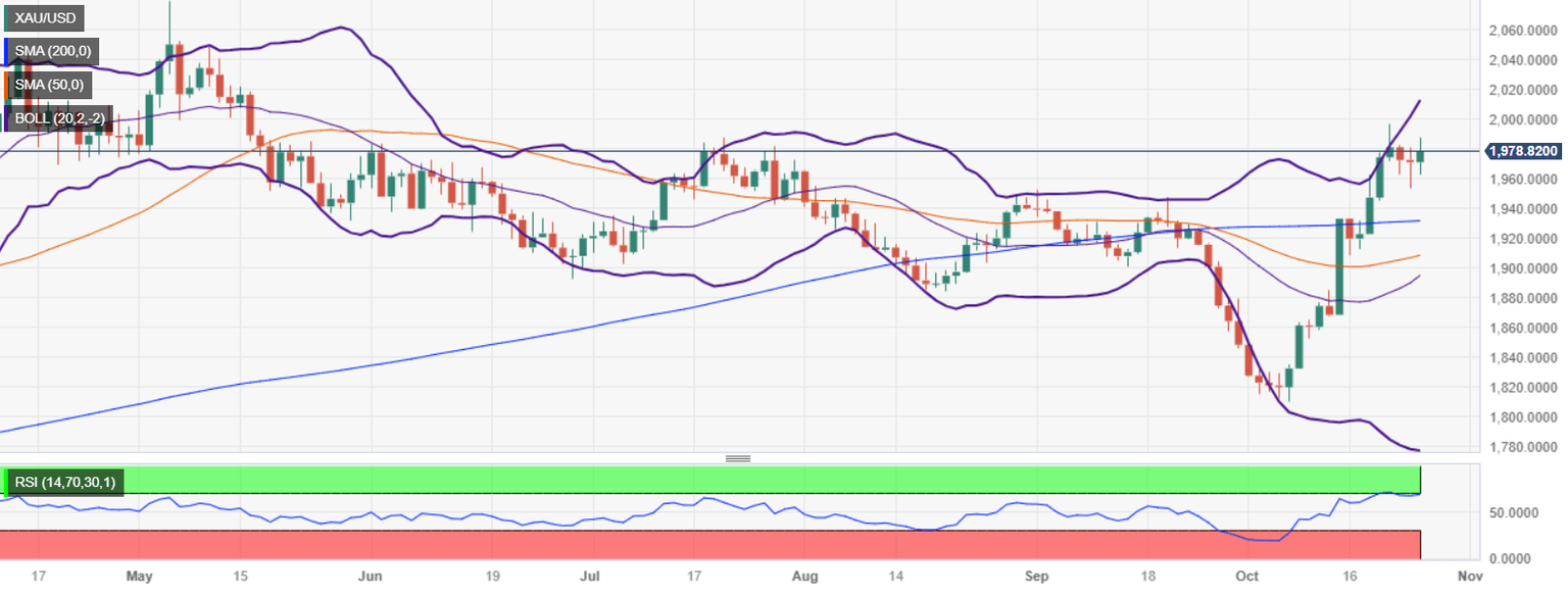 - Gold price (XAU/USD) hits a new weekly high of $1987.25, gaining more than 0.56%