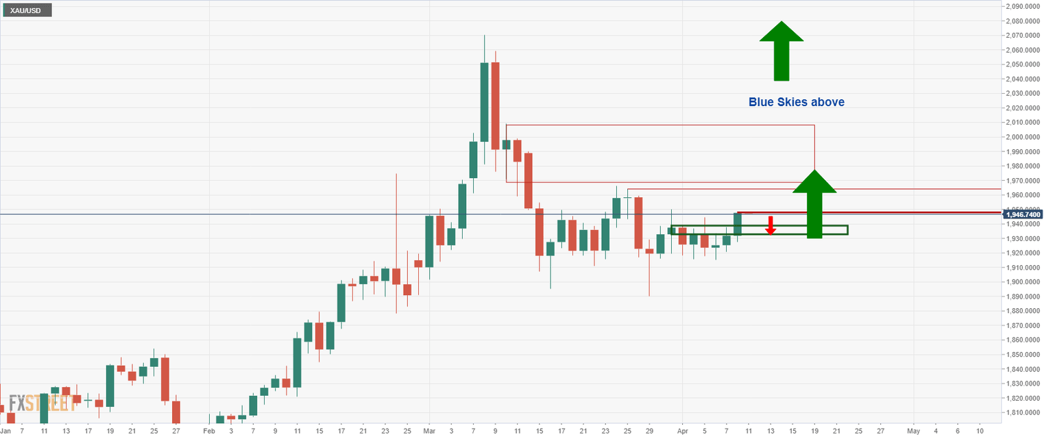From a technical standpoint, the price needs to hold in the $1,930sit the bulls are going to have a shot in the near future at breaking higher and beyond daily resistance near $1,970.