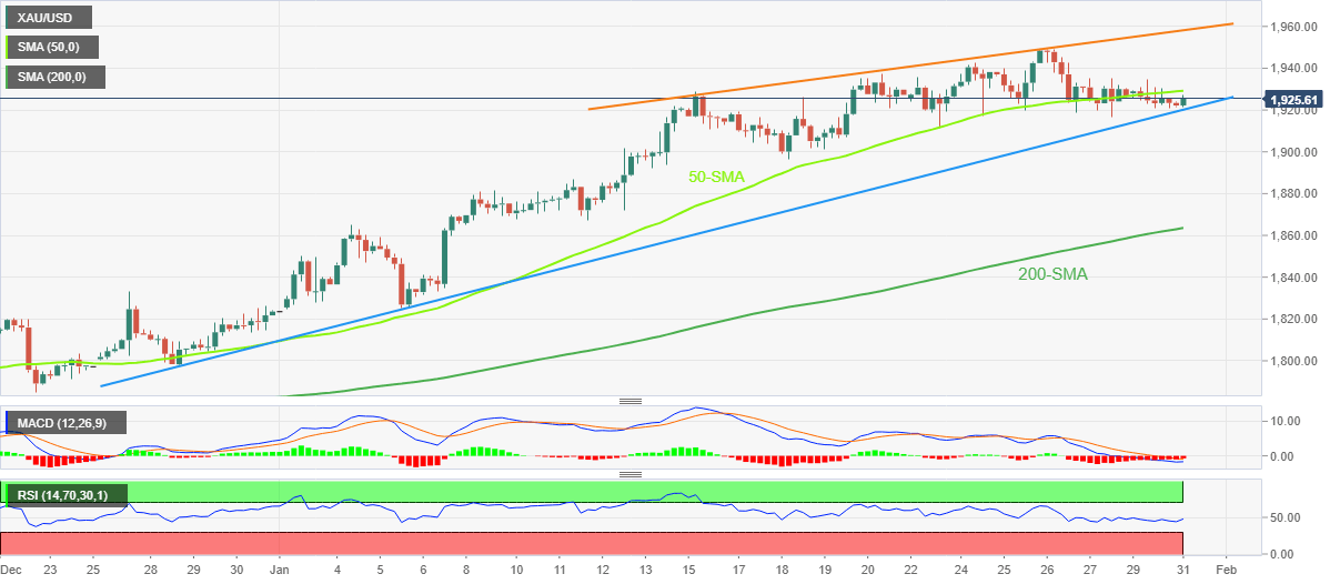 Following that, multiple swing highs marked since Thursday could probe the Gold buyers around $1,935 before highlighting the monthly peak of $1,949 and the $1,950 round figure.