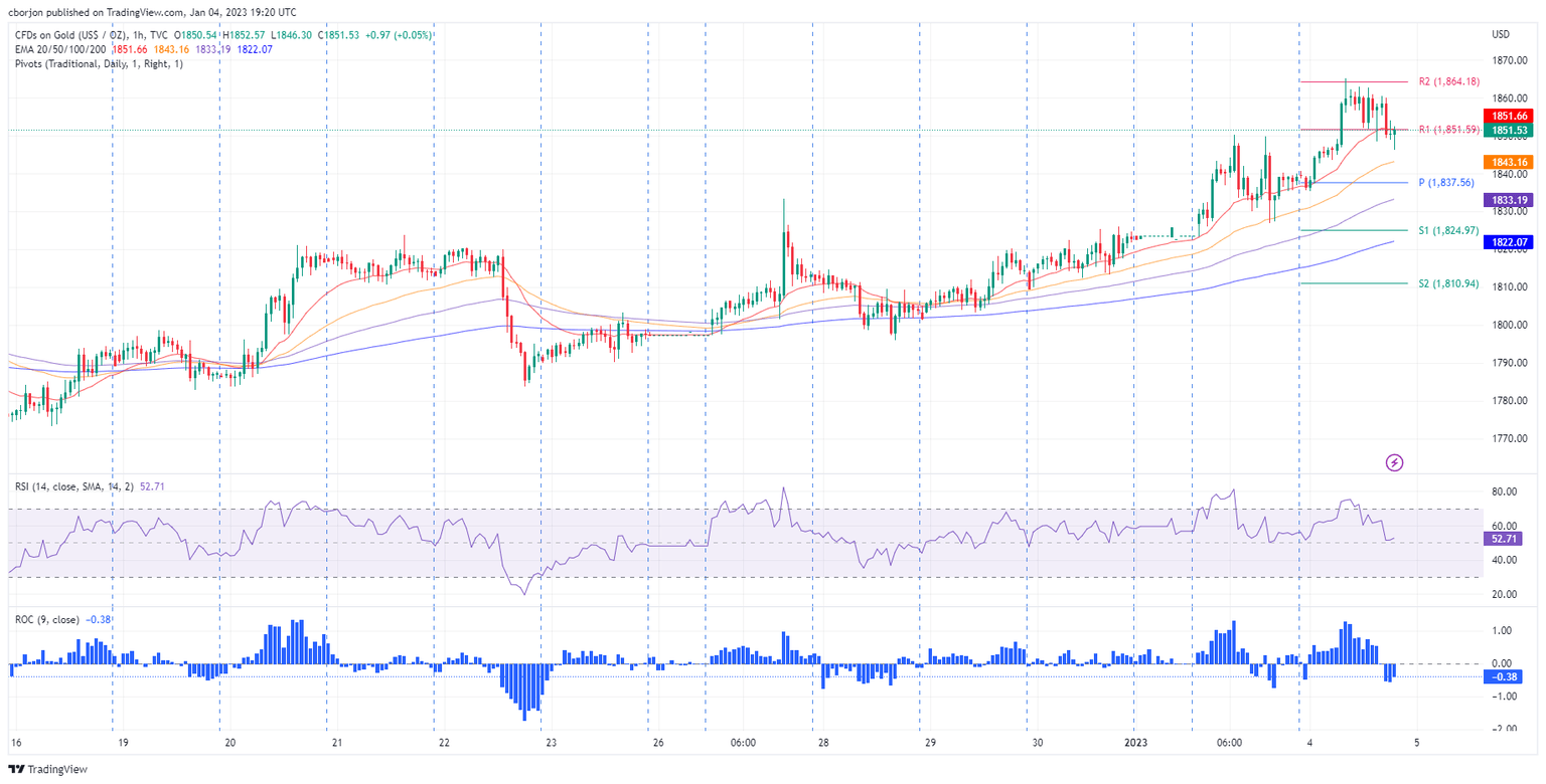 The US Dollar Index (DXY) headed towards 104.409 but retraced some of its gains. The XAU/USD slumped below $1,850, extending its drop towards $1,843, though, at the time of typing, it seesaws around the $1,850 figure.
