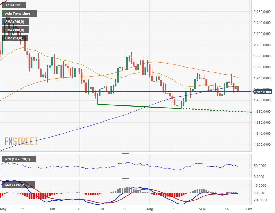 The XAU/USD took a step lower on Monday, knocking into $1,915.00 and seeing little relief pressure as the US Dollar (USD) catches bids across the board.