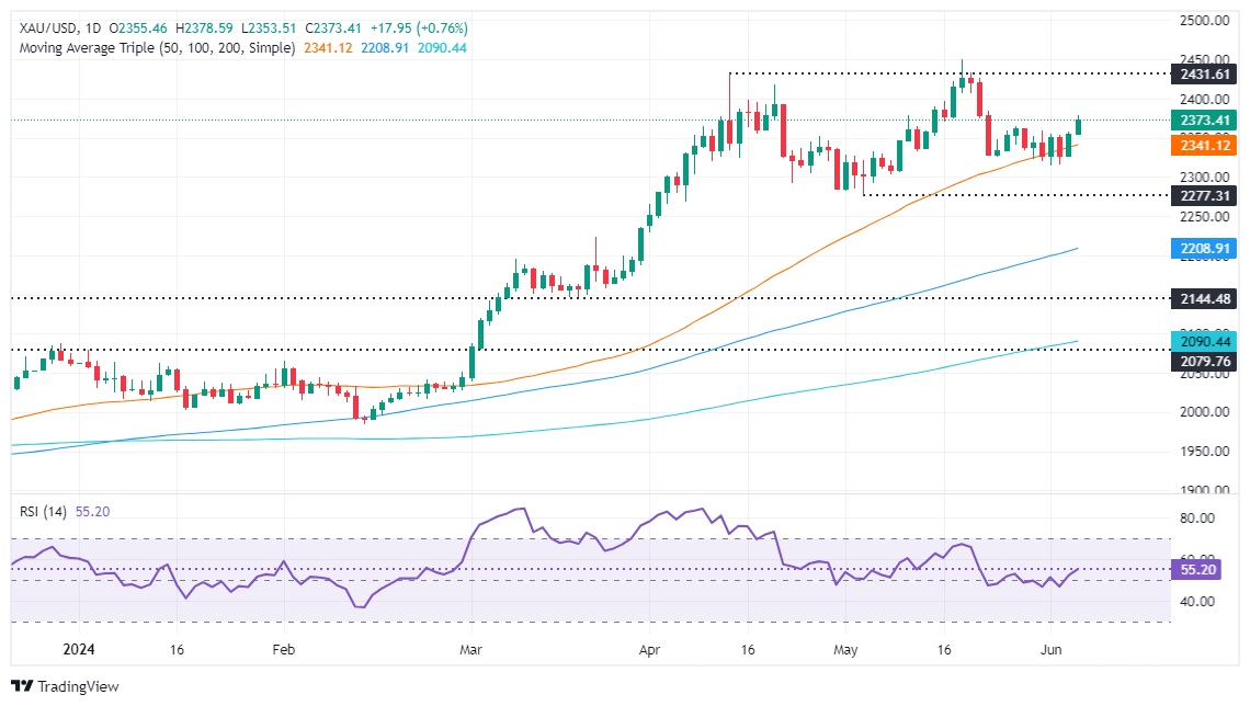 On further strength, XAU/USD's next resistance would be $2,400, followed by the year-to-date high of $2,450. Conversely, if Gold slips below $2,350, the next support would be the 50-day Simple Moving Average (SMA) of $2,337. The next stop would be the May 8 low of $2,303, followed by the May 3 cycle low of $2,277.