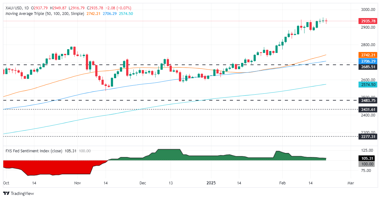 The first key support area to look at is $2,900. Once surpassed, sellers would target the February 14 swing low of $2,877, followed by the February 12 daily low of $2,864. Conversely, if XAU/USD rises past $2,954, the first resistance would be the psychological $2,950, followed by $3,000.
