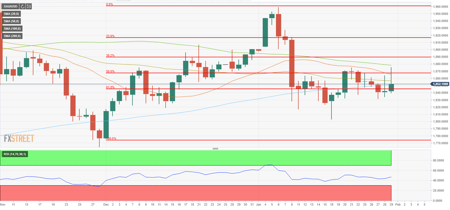 Gold Price Analysis: XAU/USD fills the gap above $1,850 inside immediate ascending triangle