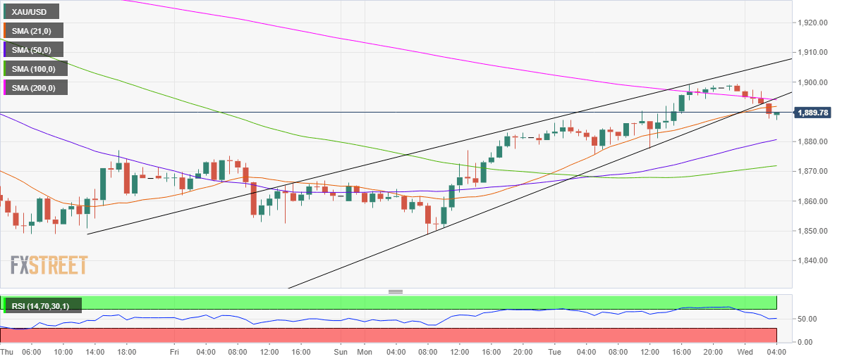 Gold Price Analysis: XAU/USD pullback from $1,900 highlights immediate rising wedge