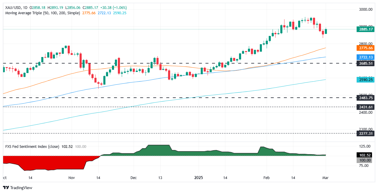 - XAU/USD climbs to $2,888 as markets brace for tariffs, weaker US growth