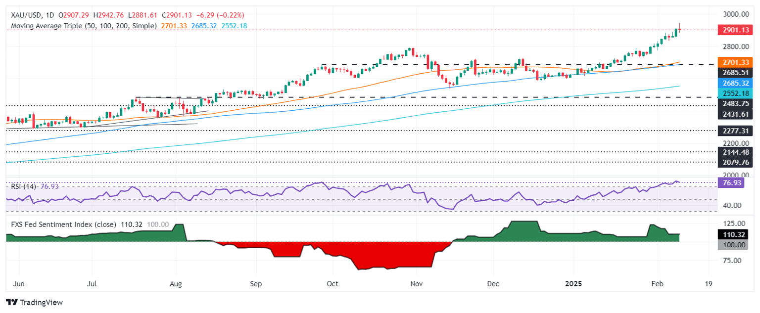 XAU/USD technical outlook: Gold price retraces and clings to $2,900