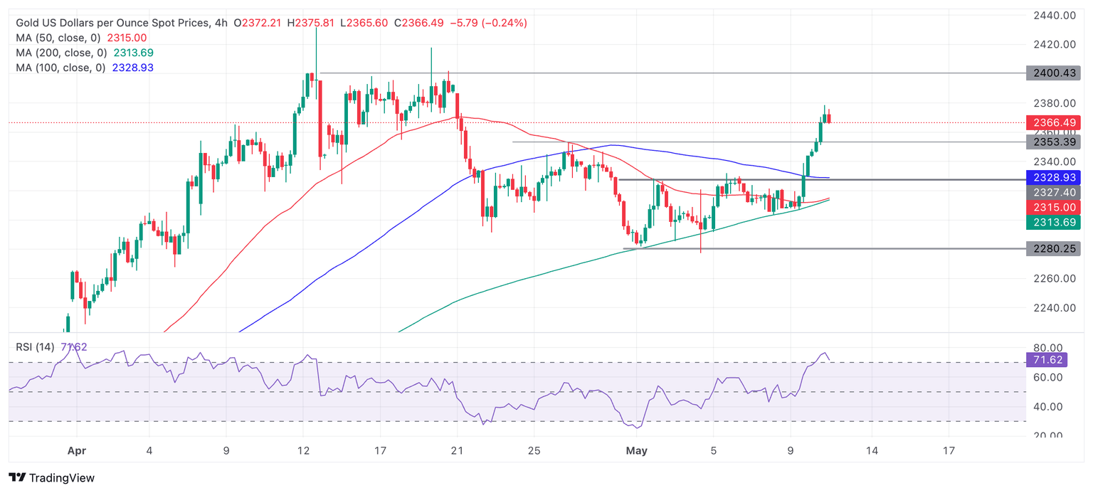 Gold price (XAU/USD) trades almost a percentage point higher in the $2,360s on Friday. The precious metal rises as increasing geopolitical tensions over Gaza solidify its safe-haven appeal.