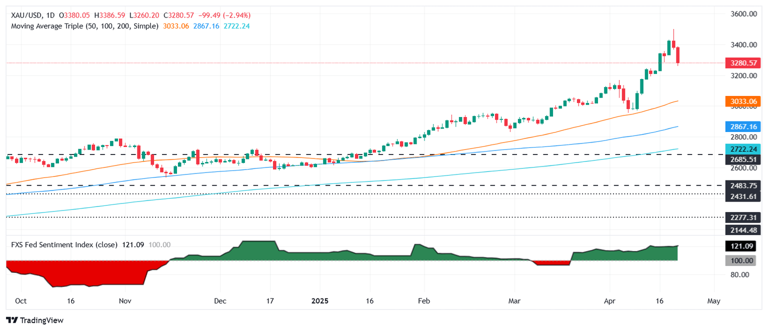 Gold prices plunged more than 2.50% on Wednesday as risk appetite improved due to a possible de-escalation of US-China tensions and US President Donald Trump's statement that he doesn’t plan to fire Federal Reserve (Fed) Chair Jerome Powell. At the time of writing, XAU/USD trades at $3,288 after hitting a daily high of $3,386.