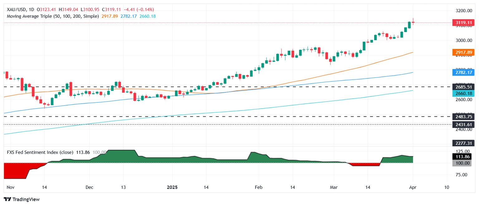 XAU/USD technical outlook: Gold price retreats from all-time highs near $3,150
