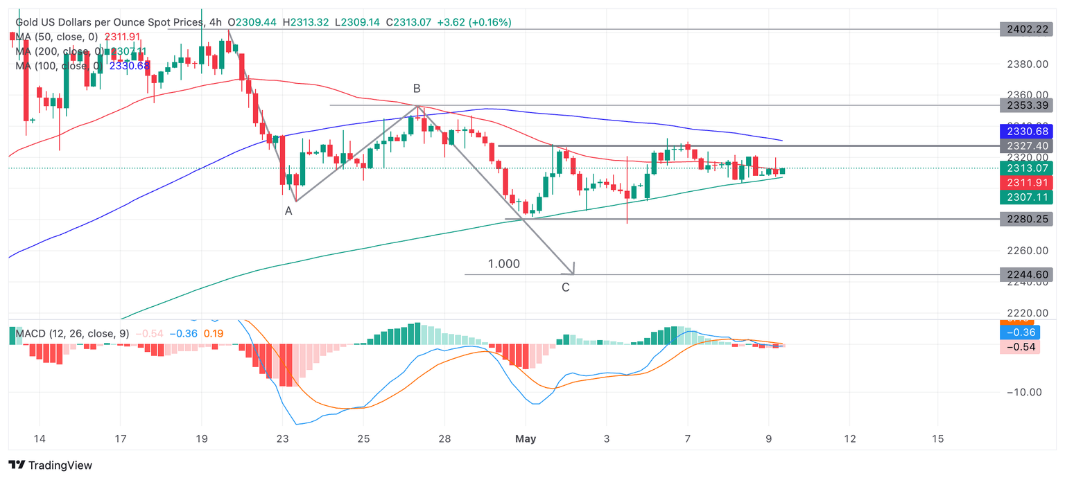 Gold price (XAU/USD) has retested and pulled back from the ceiling of a mini-range at around $2,326. It is currently finding support from both the 200 and 50 Simple Moving Average (SMA) on the 4-hour chart, in the $2,310s.