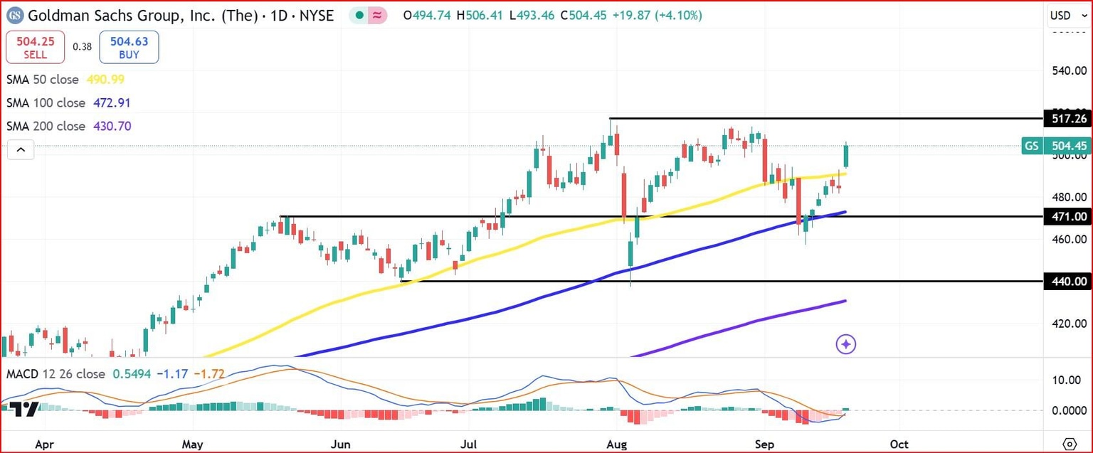 Goldman advances 4% after making correct call on 50 bps Fed cut