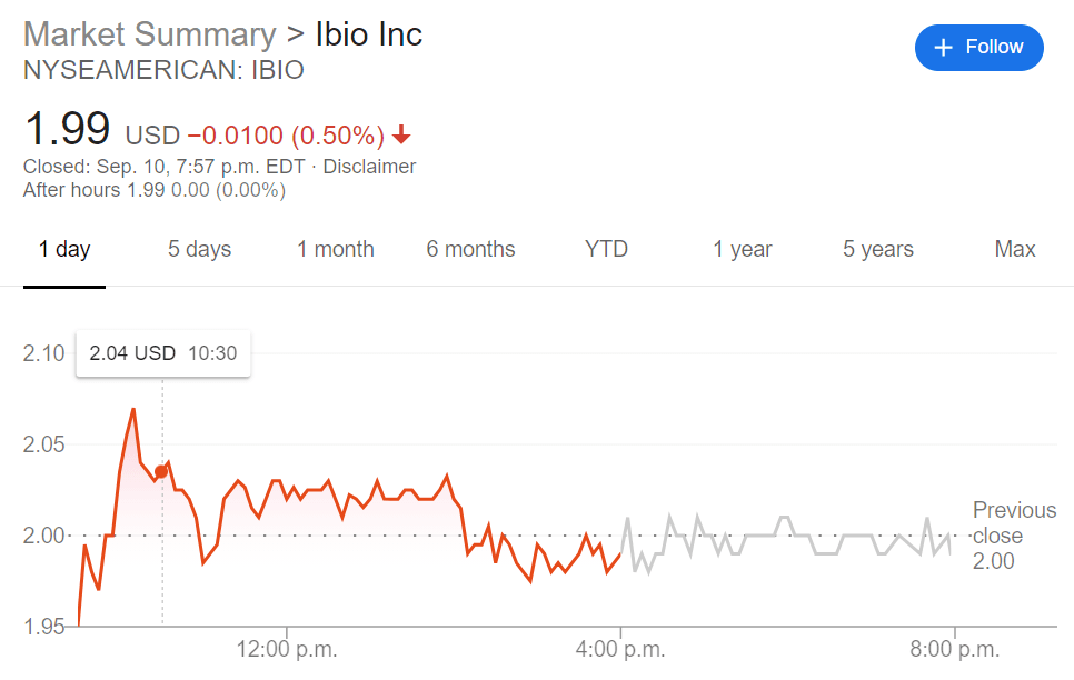 - NYSEAMERICAN:IBIO falls by 0.50% on Thursday after three straight days of gains at the start of the week.