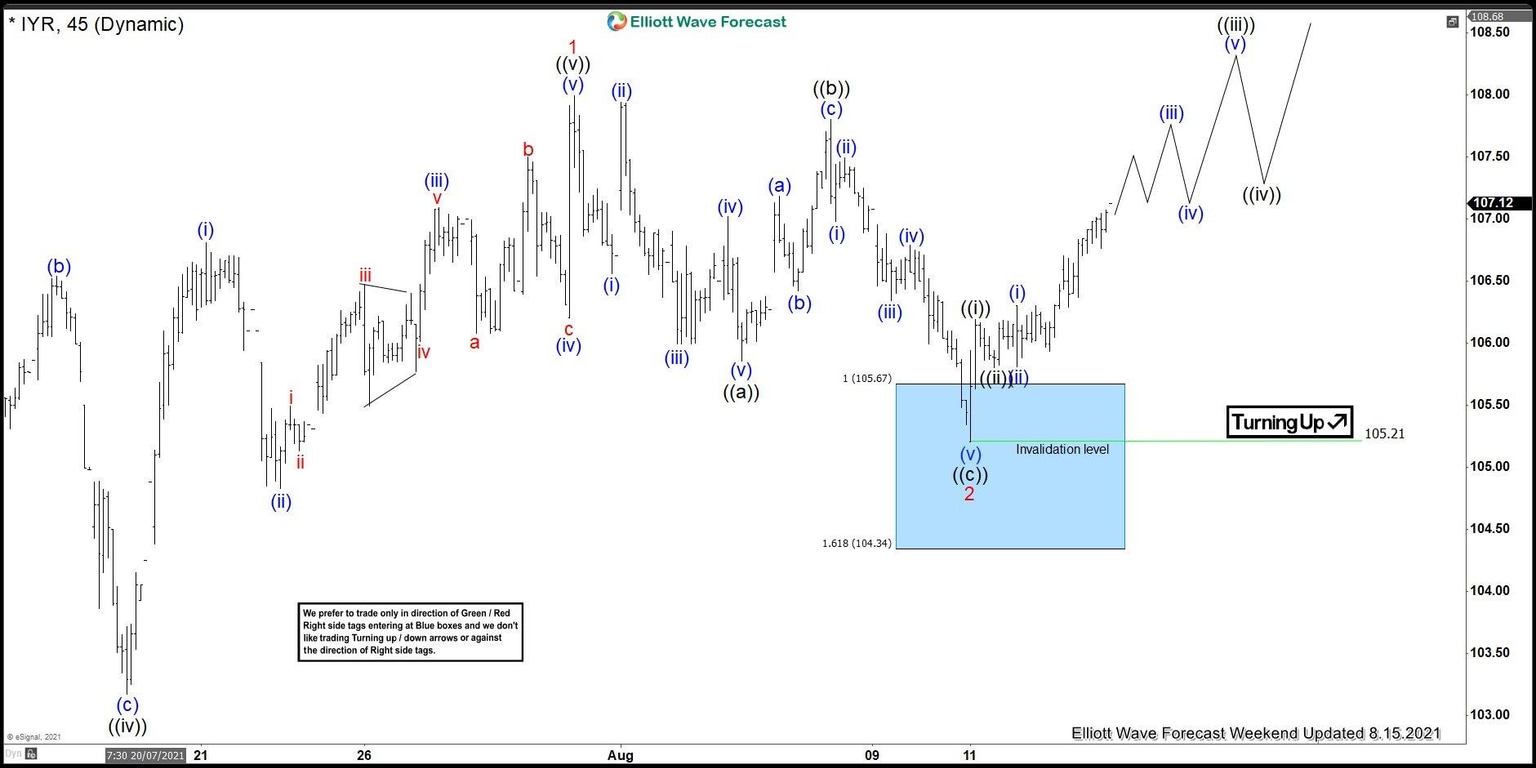 IYR 1 Hour Elliott Wave Analysis 8.15.2021