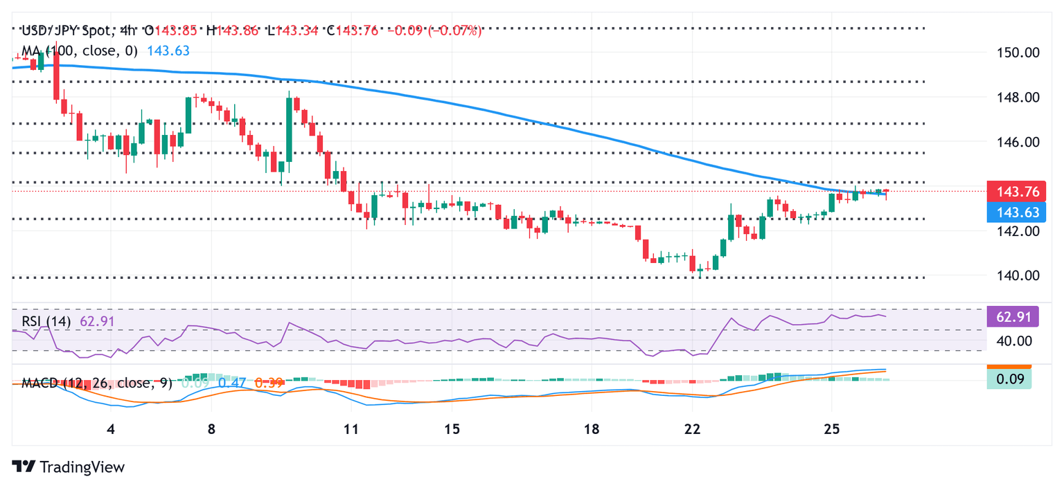 USD/JPY bulls need to wait for move beyond 144.35 before positioning for further gains