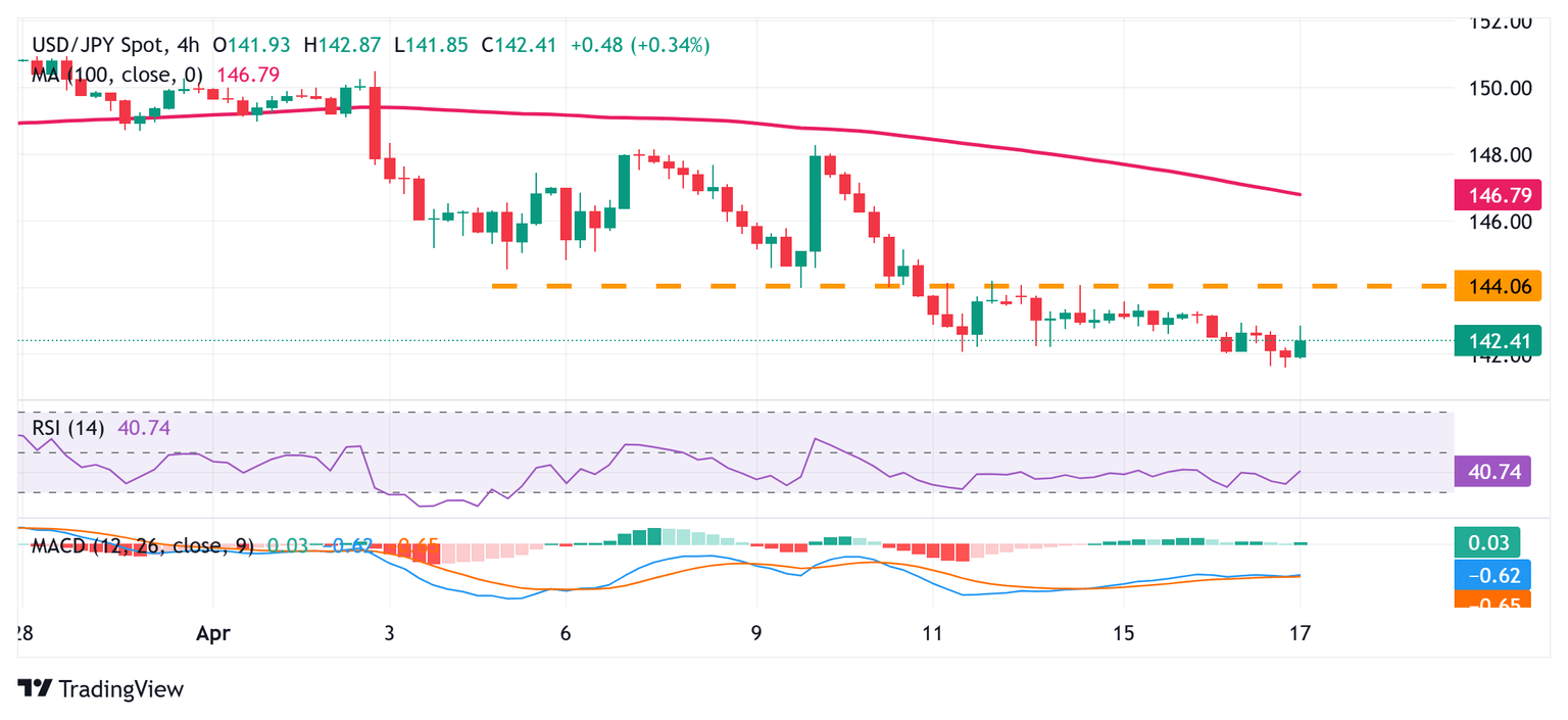 The Japanese Yen (JPY) retains its negative bias heading into the European session on Thursday, which, along with a modest US Dollar (USD) strength, assists the USD/JPY pair to hold steady above mid-142.00s. The global risk sentiment improves slightly amid hopes of US tariff negotiations and turns out to be a key factor undermining traditional safe-haven assets, including the JPY. However, the uncertainty surrounding US President Donald Trump's tariff announcement, the rapidly escalating US-China trade war, and global recession fears might keep a lid on any optimism in the markets.