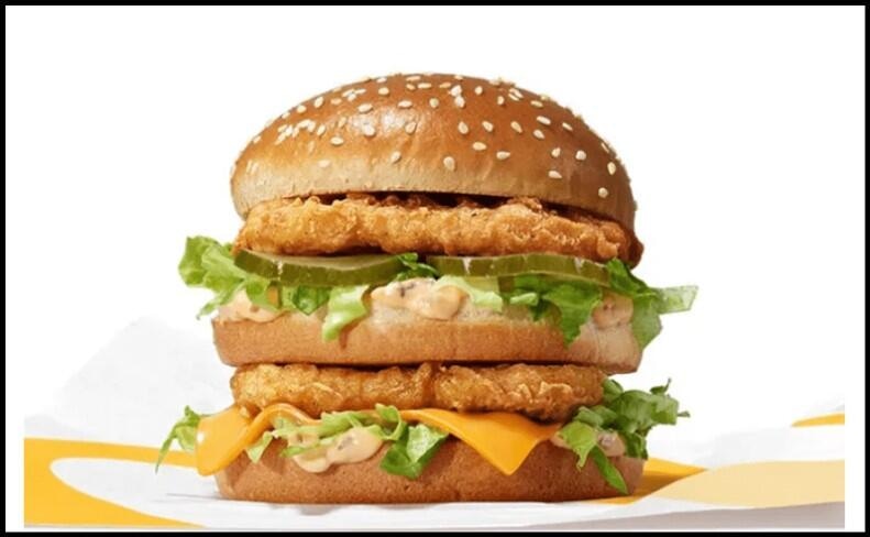 The Chicken Big Mac is a poultry version of the fast food chain’s iconic cheeseburger. The sandwich replaces the normal Big Mac beef patties with two chicken tempura patties, while the classic toppings remain.