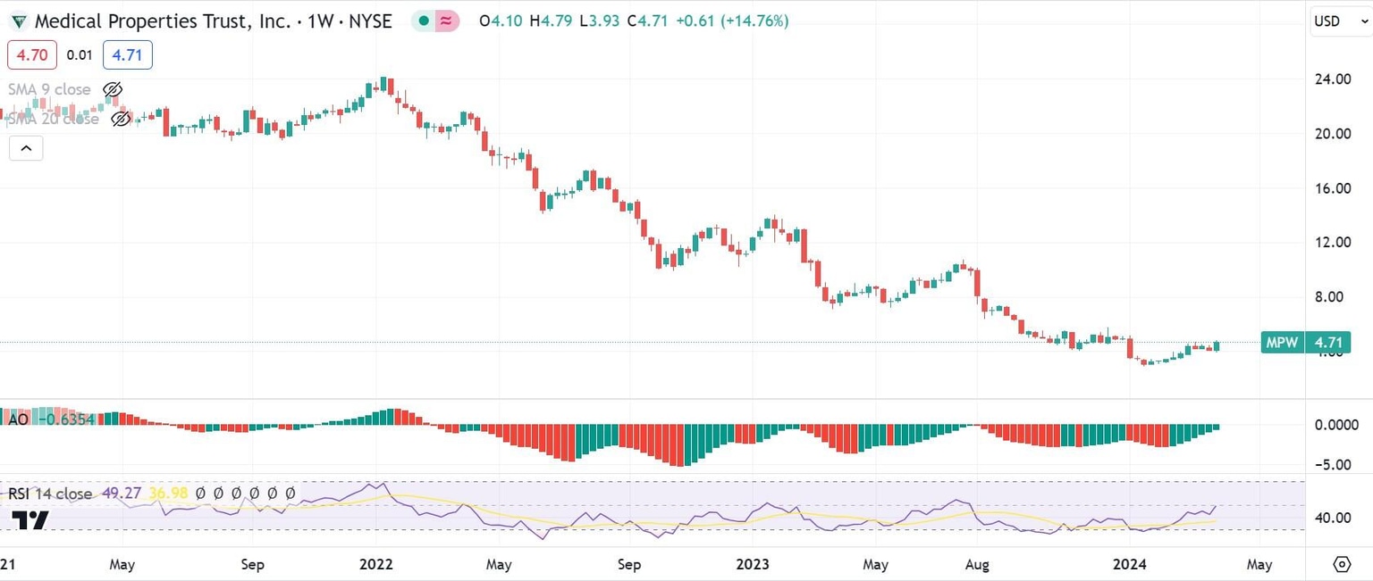 The good news is that MPW stock has now seen its Relative Strength Index (RSI) on the weekly chart move above recent highs to a level not seen since August 2023. This means that long-delayed momentum is finally on MPW's side. Short-sellers beware.
