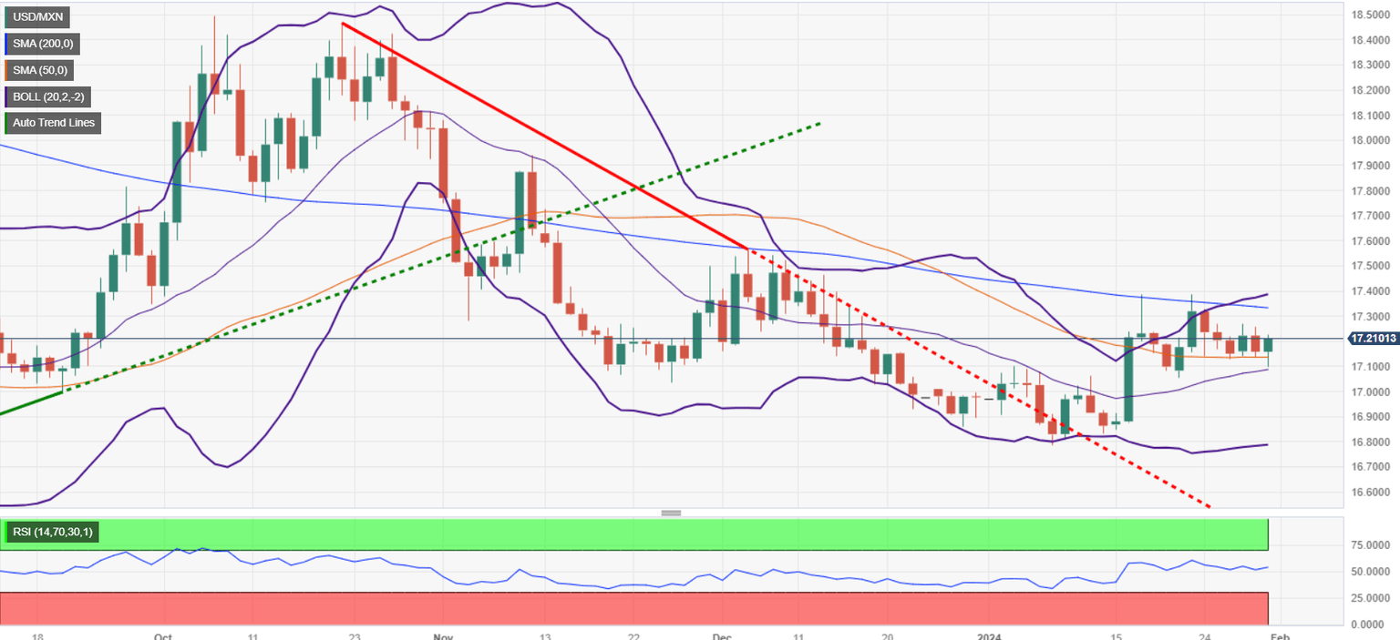 Technical Analysis: Mexican Peso drops as USD/MXN aims toward 17.20