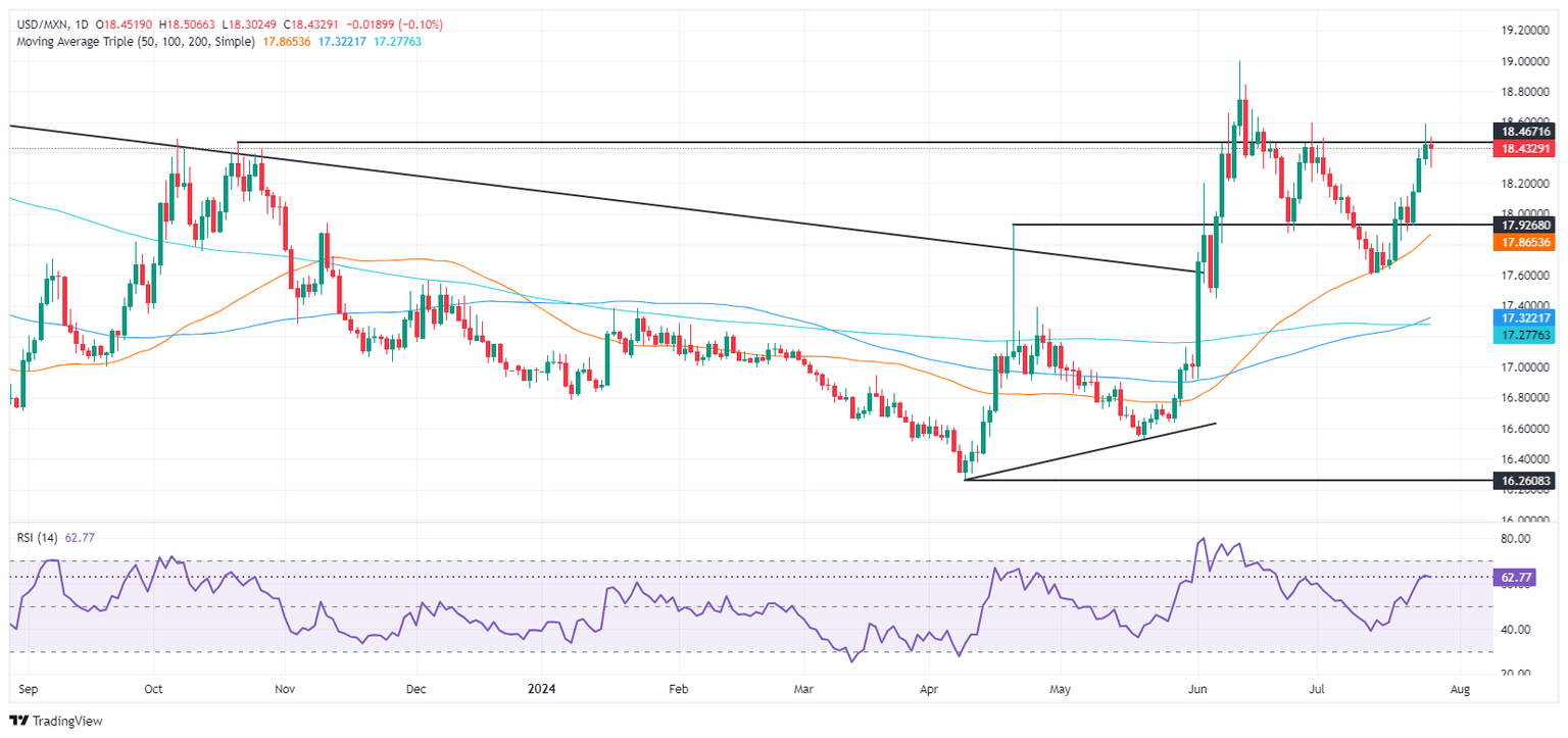 Mexican Peso plunges to two-week low as USD/MXN hovers around 18.50