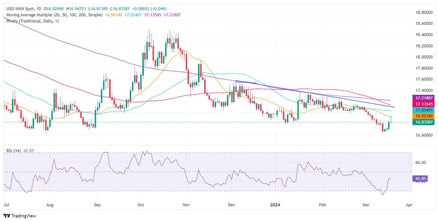 Technical analysis: Mexican Peso begins to weaken as USD/MXN aims above 16.80