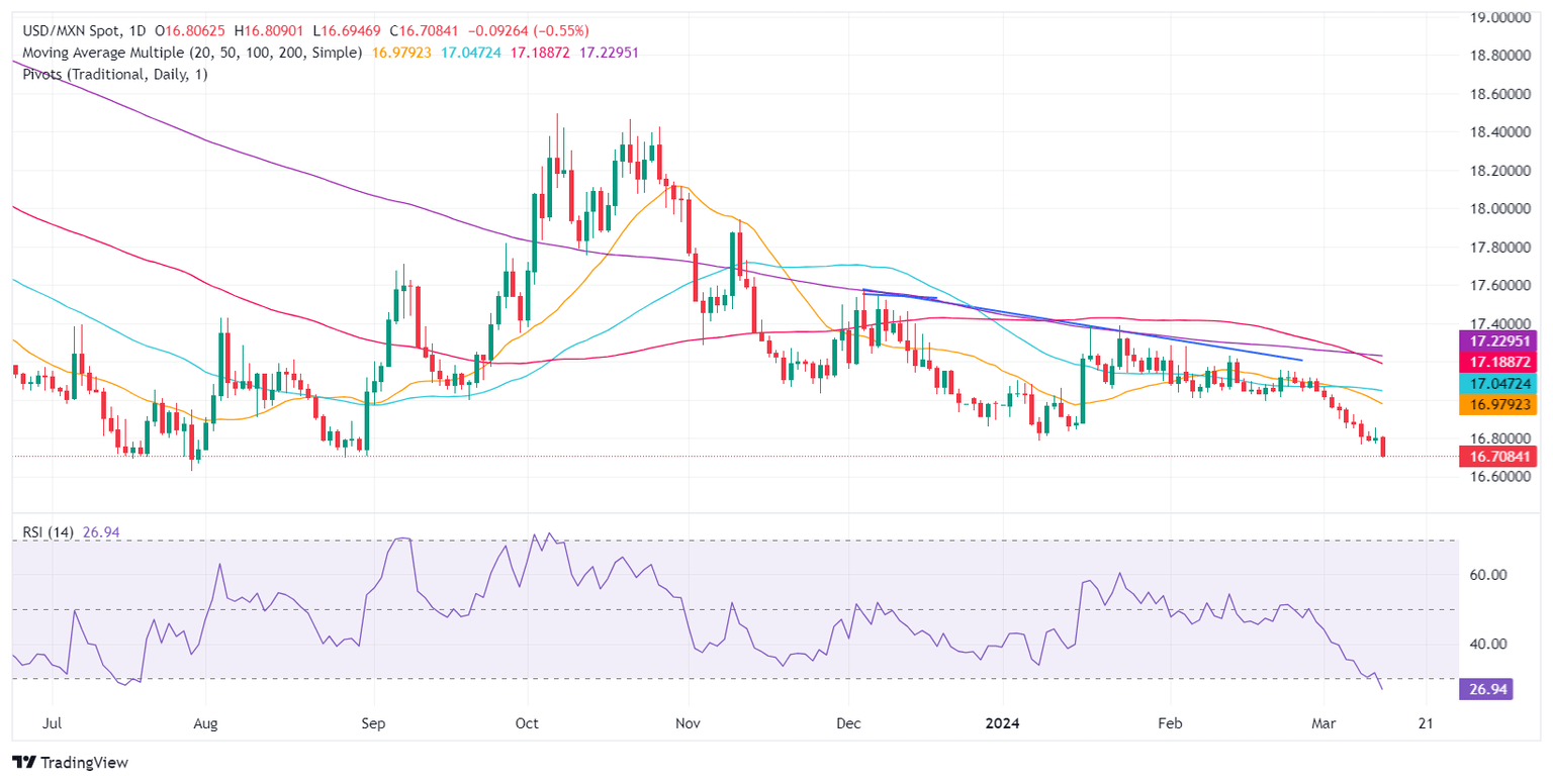 Technical analysis: Mexican Peso rally accelerates as USD/MXN edges toward 16.70