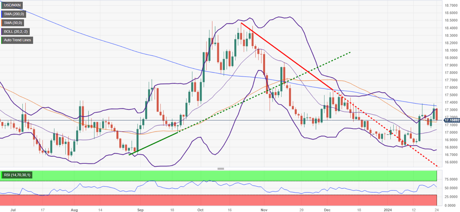 The USD/MXN erased Tuesday’s gains on Mexico’s economic data releases. Therefore, the exotic pair failed to breach the 200-day Simple Moving Average (SMA) at 17.36, extending its losses toward the 50-day SMA at 17.14. Next support is seen at 17.05, the January 22 low, followed by the 17.00 psychological figure.