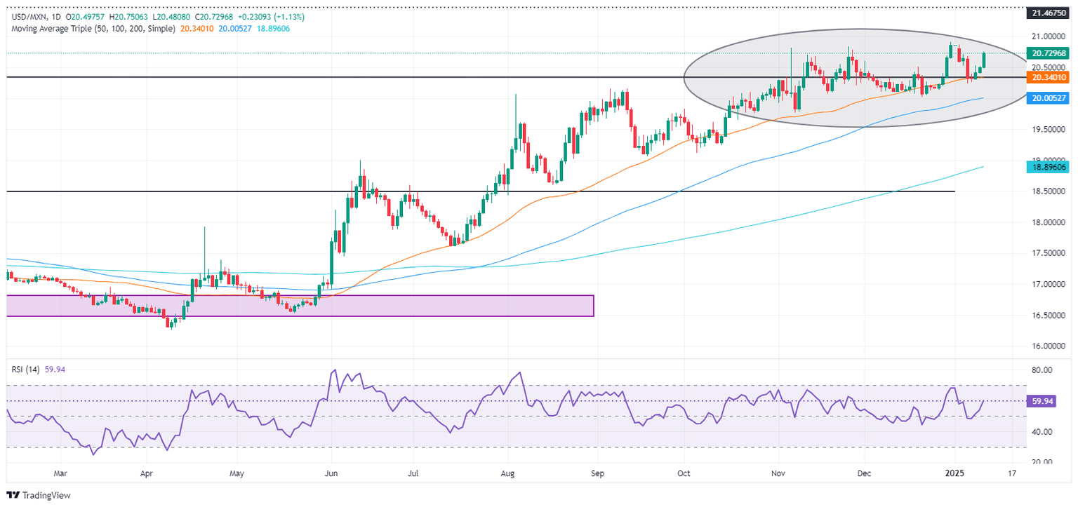 USD/MXN technical outlook: Mexican Peso remains heavy as USD/MXN climbs above 20.35