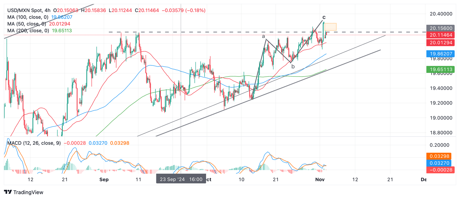 - USD/MXN peaked at a new year-to-date high of 20.29 on Friday and then opened a gap down on Monday.