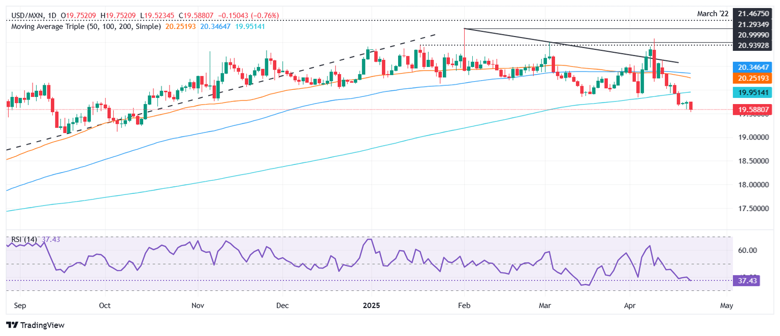 USD/MXN technical outlook: Mexican Peso holds firm as USD/MXN stays below 19.70