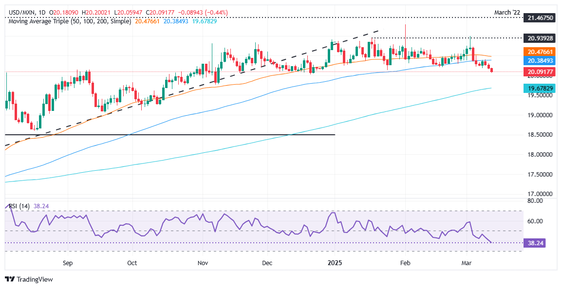 USD/MXN technical outlook: Mexican Peso surges as USD/MXN tumbles below 20.10