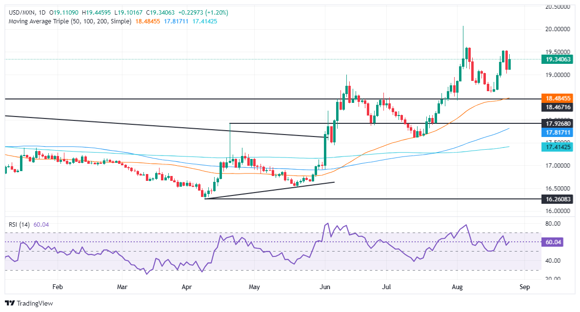 Technical outlook: Mexican Peso weakens as USD/MXN jumps above 19.30