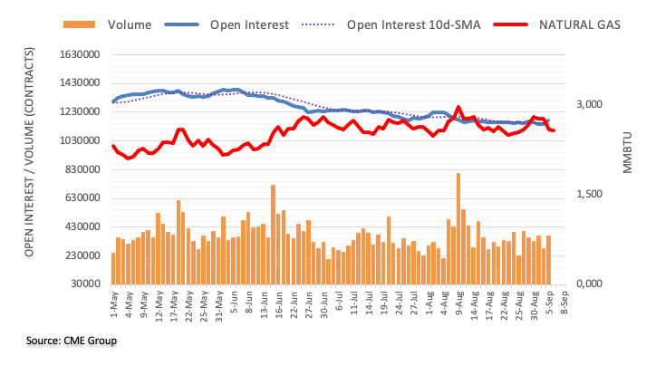 Natural gas prices extended the weekly leg lower on Tuesday. The daily pullback was in tandem with increasing open interest and volume and seems to favour further retracements in the very near term. That said, there is an interim contention around the 100-day SMA near $2.50 ahead of the August low near the $2.40 mark per MMBtu.