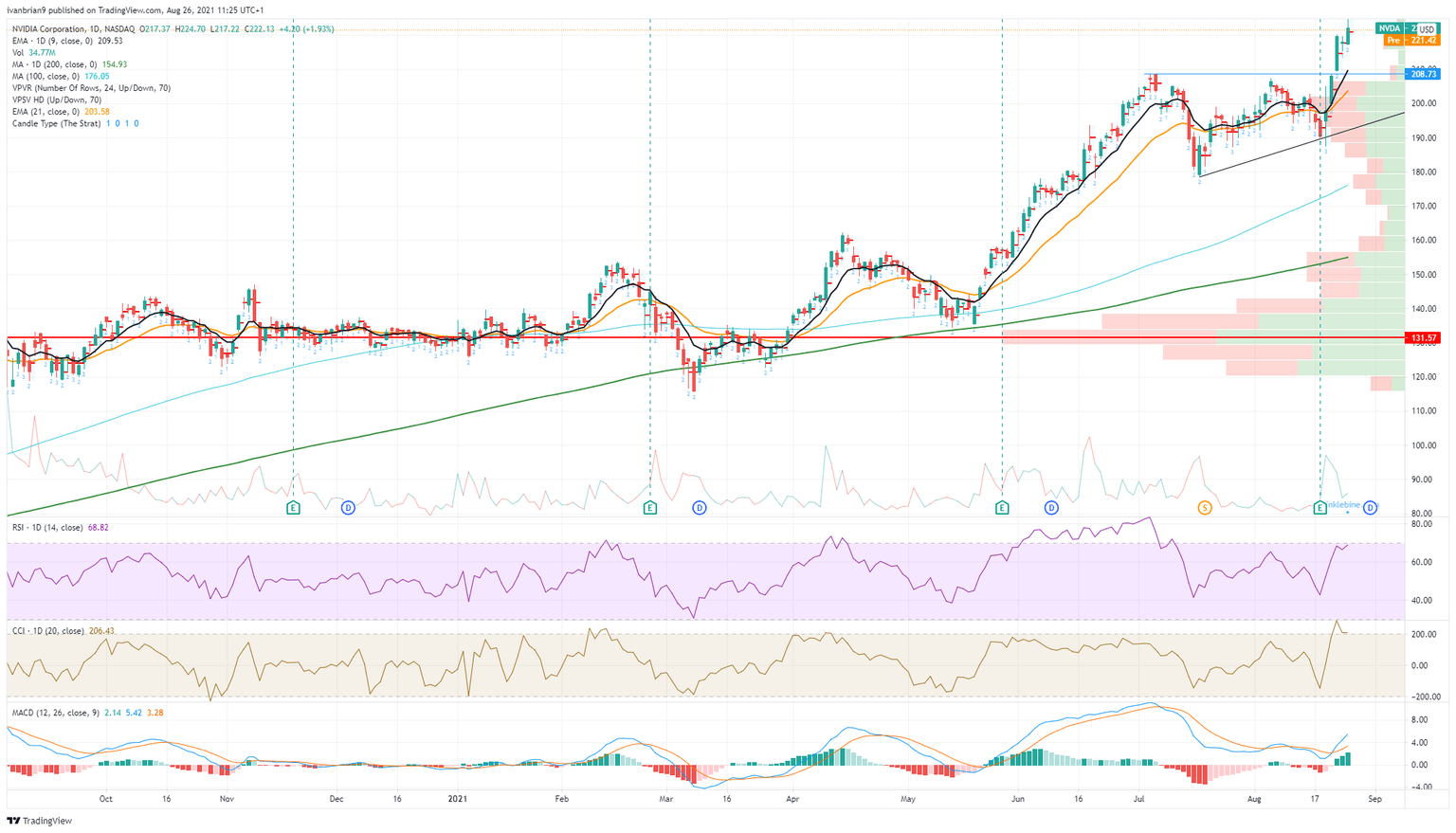 - NVDA up nearly 2% to $222.13 on Wednesday.