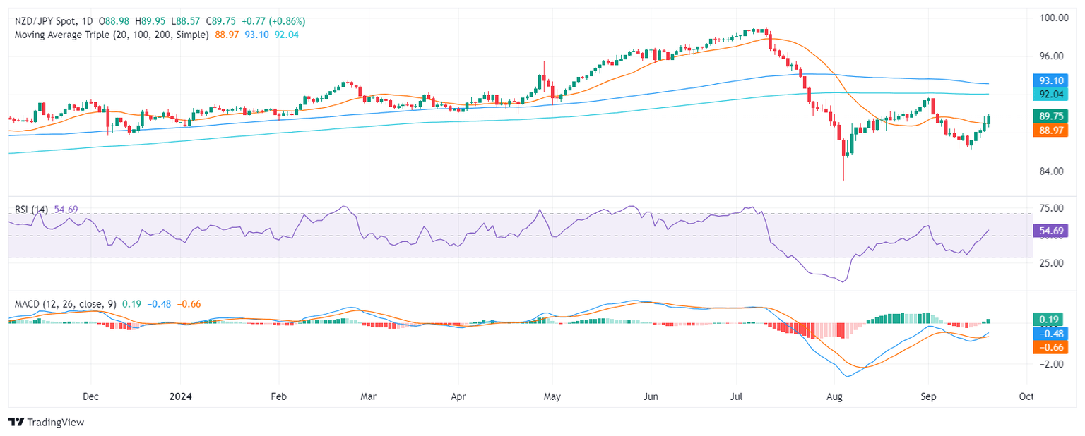 - The NZD/JPY rose by nearly 0.90% to 89.80 on Friday.