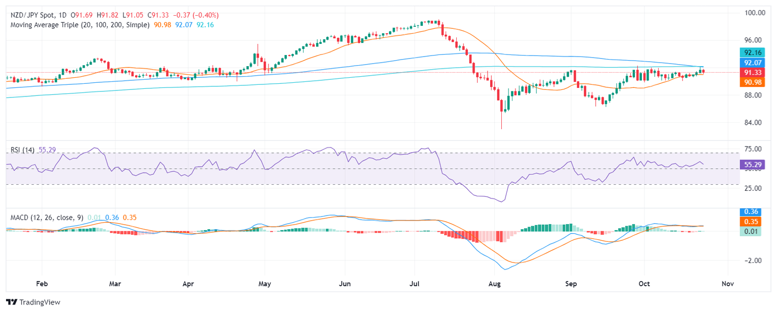 The NZD/JPY pair has retreated from its recent highs, signaling a potential shift in momentum. In Thursday's session, the pair shed 0.40% to 91.30, and continues to side-ways trade but with some signs of bulls weakening.
