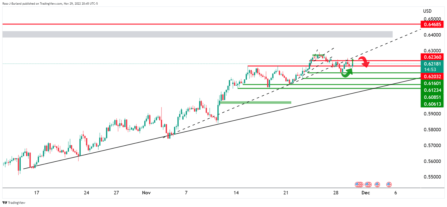 - 0.6250 is eyed on a break of the resistance near 0.6225.