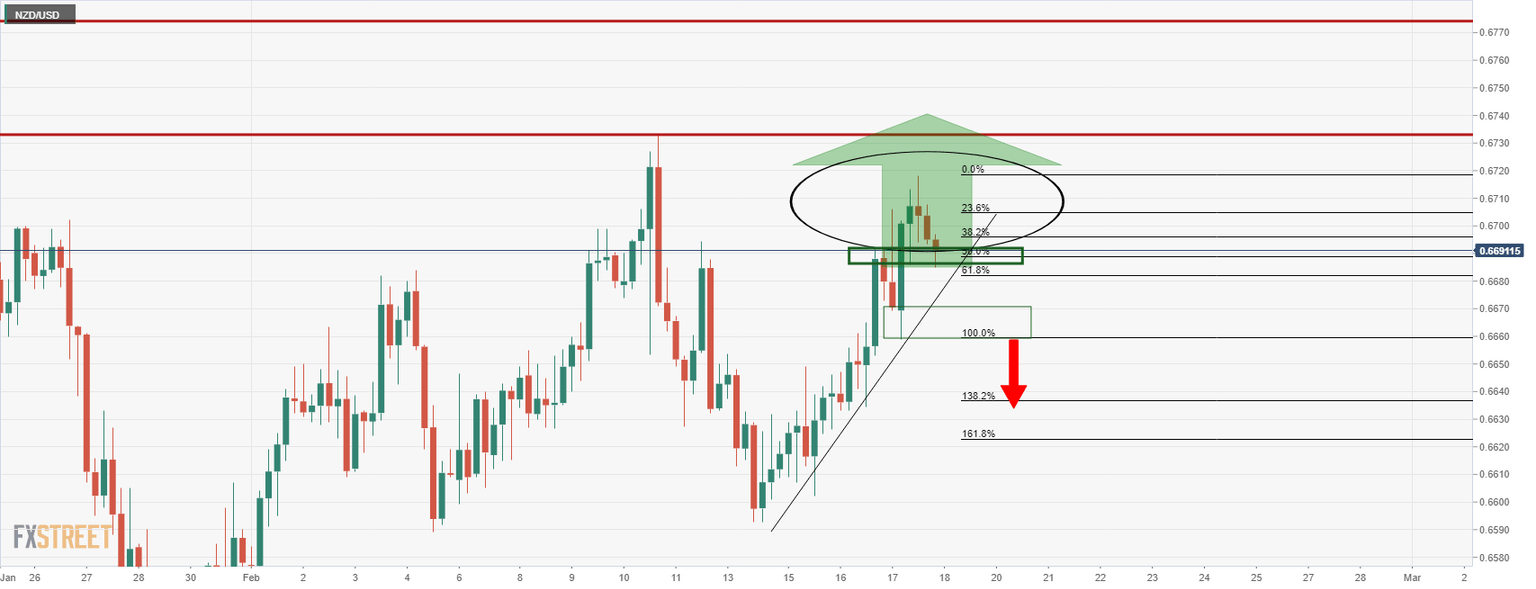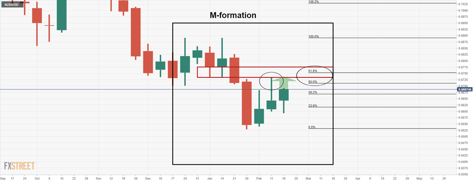 As per the prior analysis, NZD/USD flying towards 0.67 the figure despite Russia angst, the bird crept higher for a deeper test of the M-formation's neckline.