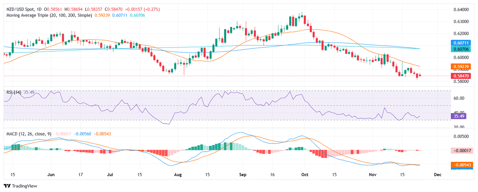 The NZD/USD continued losing on Monday, to fall near 0.5850. Bulls struggle to halt the losing streak, now at lows since November 2023 but sellers might start to ran out of steam.