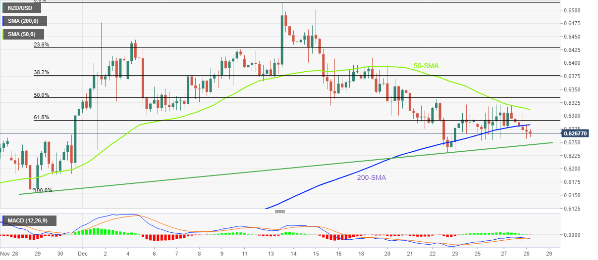 Meanwhile, the 61.8% Fibonacci retracement level of the NZD/USD pair’s November 28 to December 13 upside, also known as the “Golden Ratio”, guards immediate recovery moves of the pair around 0.6290, in addition to the 200-SMA hurdle of 0.6283.