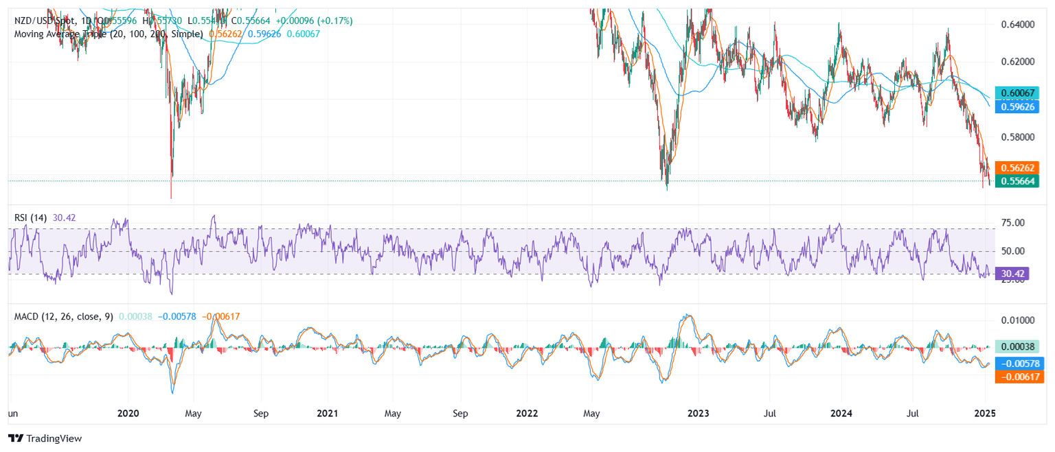 The NZD/USD pair attempted a minor rebound on Monday, climbing to around 0.5560 and offering a temporary respite from its recent sharp decline. Despite this uptick, the pair remains hovering near multi-year lows, reflecting the broader downbeat sentiment that has dominated trading for several sessions.