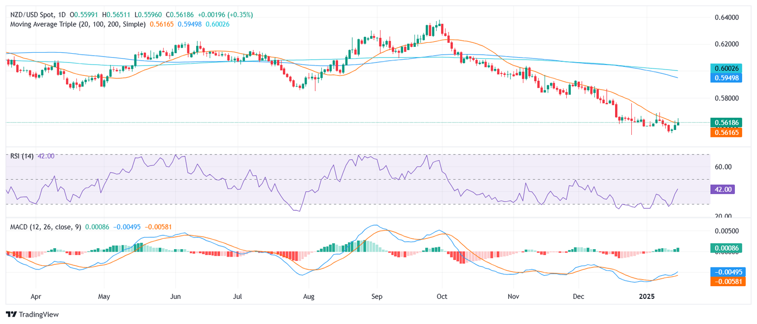 The NZD/USD pair added a modest 0.30% on Wednesday, edging up to 0.5615 after extending gains beyond its 20-day Simple Moving Average (SMA). This marginal push above the moving average could be the catalyst bulls have been waiting for, provided it holds steady in the coming sessions. Sentiment has shown signs of improving from oversold levels, although the market tone remains cautious overall.