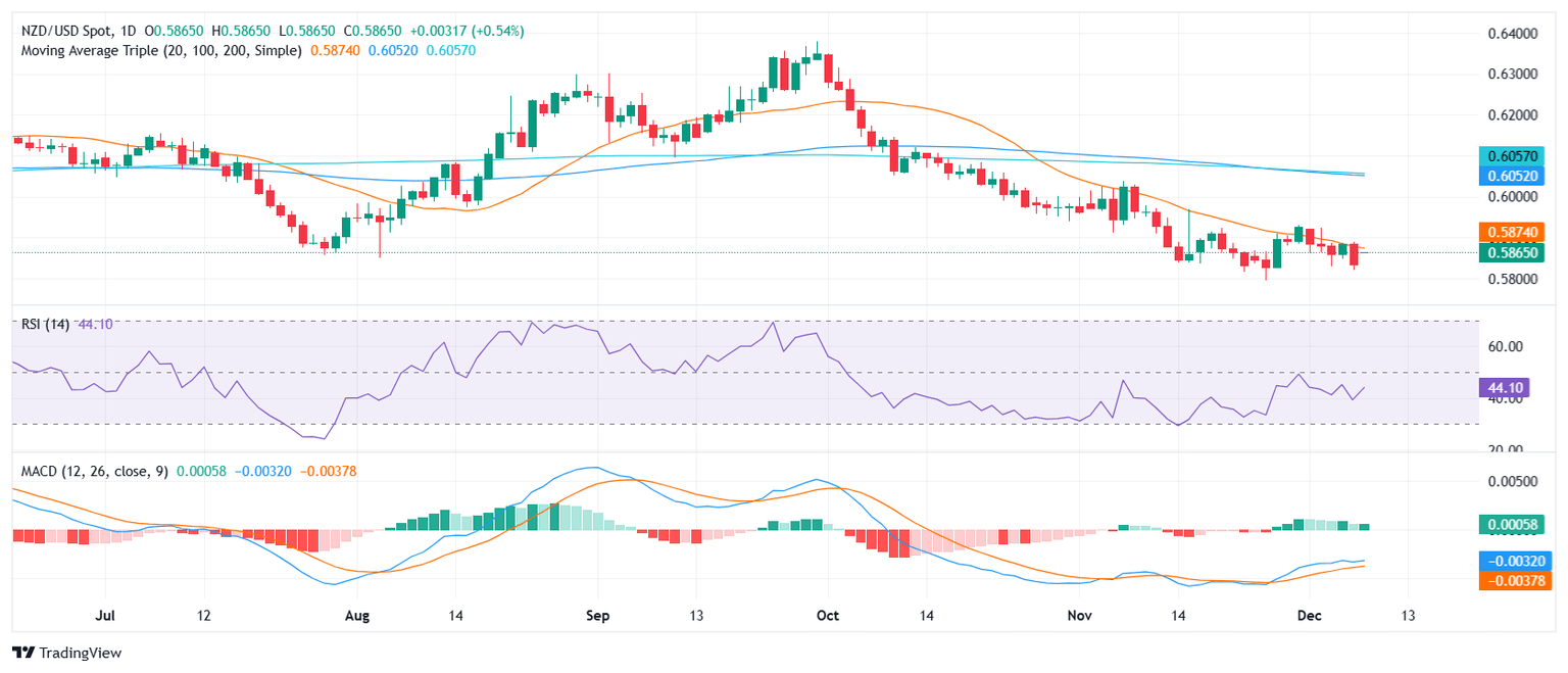While the pair holds above the 0.5830 support level, a sustained break above the 20-day SMA is needed to confirm a shift in momentum in favor of the bulls. On the downside, failure to maintain current levels could see the pair revisiting the 0.5830 support and potentially targeting the 0.5800 psychological level if selling pressure resumes.