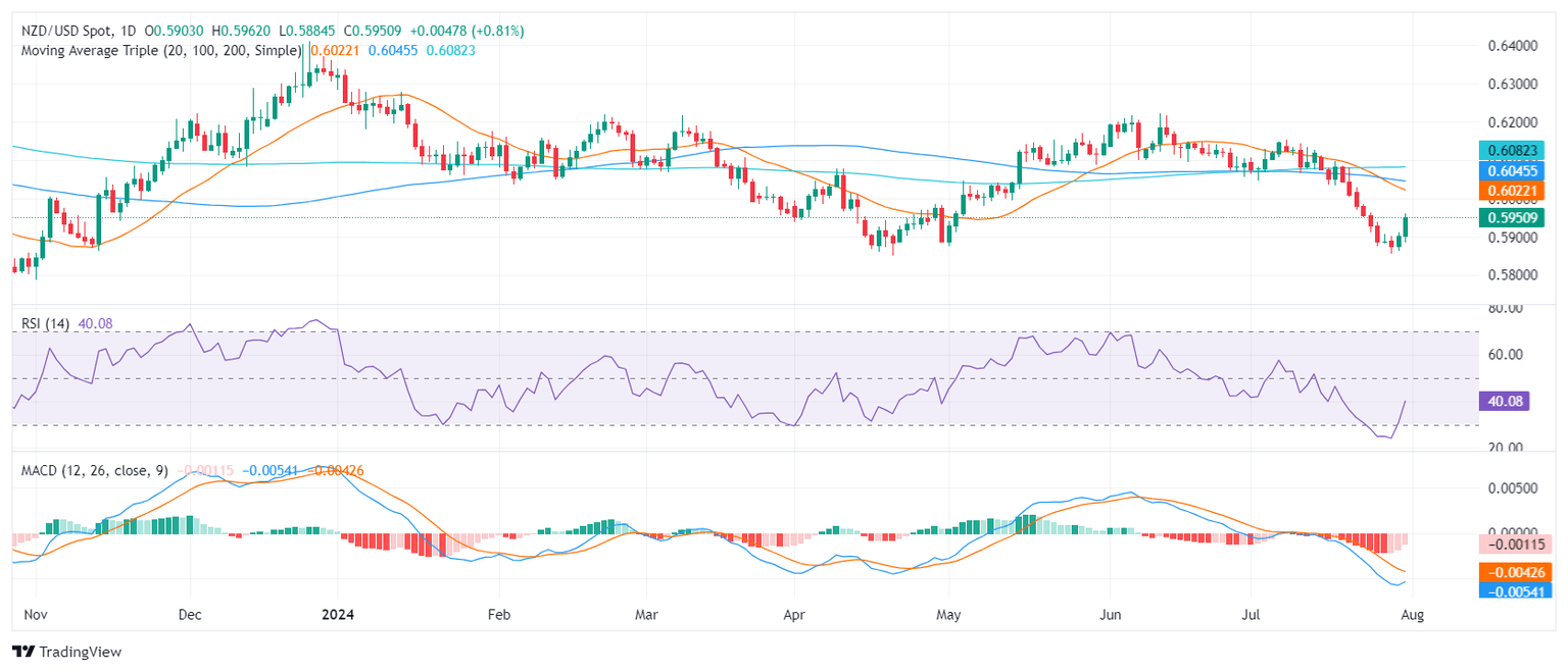The NZD/USD pair's persistent bearish trend has kept it within a specified range with a solidified support level around 0.5860 and notable resistance at 0.5980. Future sessions may see the pair continue to struggle unless a significant bullish trigger emerges.